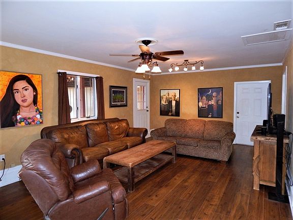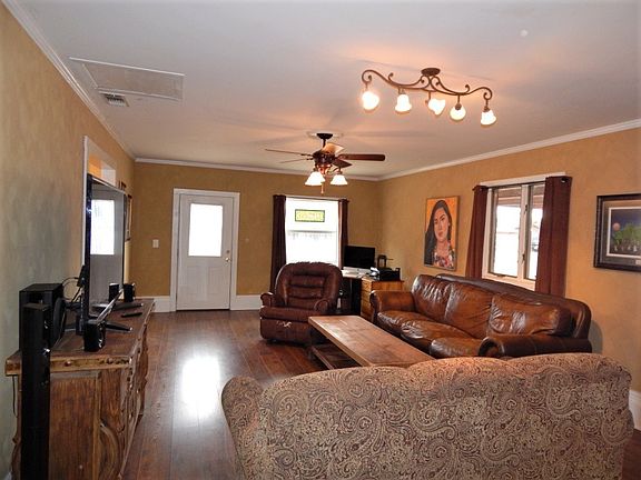 Located out of flood zone, sits on 2 lots on corner in an established neighborhood. Property offers open floor plan, 3 bedrooms + office/ bedroom , 2 baths, enclosed storage/shop room w/carport, awesome privacy fenced yard w/double gated vehicle entrance & a fire-pit area. Great home with laminate wood flooring through out & lots of natural sunlight located within walking distance to the baseball field, city park & golf course. More information to come. Call Michelle for a showing.