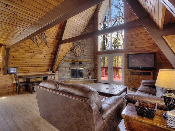 ABSOLUTELY CHARMING & STRONG-INCOME-PRODUCING CHALET JUST A HALF-MILE FROM THE ENTRANCE TO OBER GATLINBURG SKI RESORT, and within walking distance of the Chalet Village Owners Club with its pool, clubhouse, and tennis courts! And downtown Gatlinburg and the Great Smoky Mountains are just minutes away. A BEAUTIFUL SEASONAL VIEW of the national park mountains is an added bonus while enjoying the cozy fire pit on cool evenings or the upper balcony on warmer days. The property has been well-maintained by Sellers to keep their guests happy and returning. The kitchen boasts additional bar dining and newer handcrafted butcher block counter tops. Both the living/dining areas and the downstairs recreation room feature warm gas fireplaces, and there is a bedroom and full bath on each of the three levels. The roomy and private master suite features a jetted garden tub and a full-size washer and dryer. A soak in the covered hot tub or a game of pool will cap off your day of fun when you return from skiing or a long day at Dollywood. The spacious decks wrap around 3 sides of the chalet with multiple places to gather, read, or just enjoy the lovely surroundings. Easy access and lots of parking, too! Seller has made and inherited quite a few updates, including a 2017 HVAC system...ask an agent for the list. Upper level has its own ductless split HVAC. This adorable a-frame will make its new owner the perfect getaway, investment property, or permanent home.