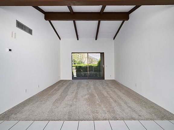 Location, Location, Location! Enjoy the amazing mountain views from this top-floor 1-bedroom condo, in a sought-after gated community. Featuring soaring vaulted post and beam ceilings. The spacious floor plan is perfect. Condo amenities, include a covered carport parking spot, tennis and pickleball courts, a vibrant community room, a fully equipped gym, and a relaxing sauna. Not to mention the 3 heated pools, 2 spas, and BBQ area. The HOA allows short-term rentals with 15-day minimums if city permits are available. Your low HOA fee covers Spectrum cable TV, internet, water, and trash and maintenance of all common areas. Freshly painted and carpeted, this condo is move-in ready. Located close to transportation, shopping, and downtown Palm Springs. Pets welcomed too. Don't miss out on this one!