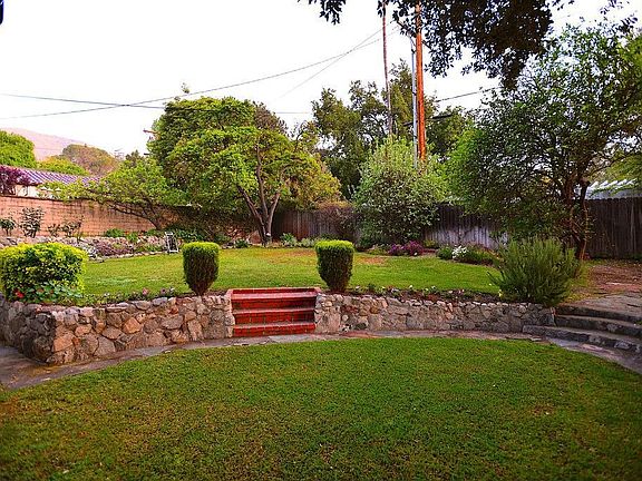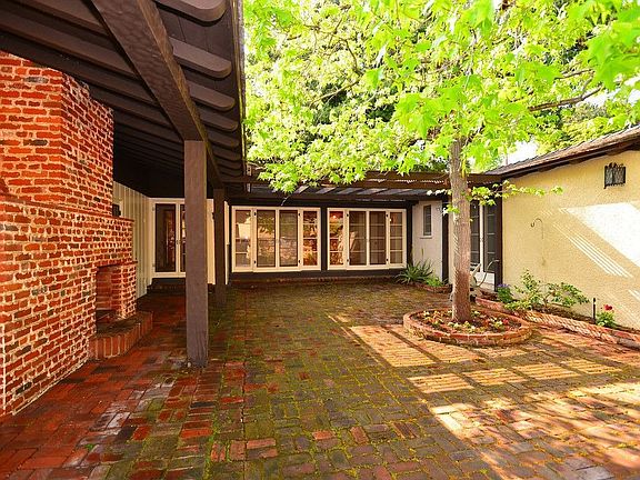 The tone is set for this charming home, as you enter the foyer with vaulted beam ceiling and parquet wood floors. The spacious sunken living room features a vaulted, open beam ceiling, peg & groove hardwood floors, a fireplace and built-in shelving, an ideal place to enjoy an evening with family and friends. Wainscoting lines the formal dining room wall with peg & groove floors and kitchen pass thru for easy serving. The kitchen is easily accessible from the garage, featuring oak floors, oak cabinets with lead glass doors, individual sliding drawers and a cutting board. It also includes a built-in Ronson service center with attachments, a built-in refrigerator, dishwasher and gas stove. Vintage floor tile in the center family room provides easy access to the yard and is the place to gather for a comfortable conversation, a fine meal or to watch TV. Each bedroom has itâ??s own walk in closet & shelving, so everyone has plenty storage. Appointed with quality craftsmanship, the custom built in cabinetry and shelving is a space saver. Numerous glass doors, provide easy access to the outdoors and add additional light to every room. Spacious multi level rear yard with covered patio off bedroom is perfect for adding a pool or planting your vegetable garden. The brick courtyard is the perfect place to entertain and enjoy a BBQ or to just read your favorite book. Lush landscape with mature oak trees provide the perfect amount of shade on those warm, sunny days.