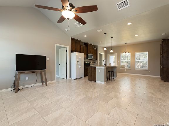 REDUCED $20,000 - MOVE IN READY! Better than new 3-bedroom, 2-bathroom home with garage offering the perfect blend of comfort, functionality, and privacy. Eligible for USDA, VA or FHA financing. One owner home feels brand new in great Spring Branch location. Fenced backyard! Step inside this immaculate home and enjoy the high ceilings and open-concept layout. No carpeting- this home features easy-to-maintain tile flooring that adds a clean and modern touch. Double pane windows with screens and well insulated house is very energy efficient- owners electric bill has never been over $160- and averages well below. The heart of the home is the spacious kitchen, complete with a central island that provides extra counter space for meal prep, entertaining, or casual dining. Custom solid wood cabinetry offers abundant storage and a unique, high-end feel. The kitchen flows effortlessly into the living and dining areas, creating a bright and inviting atmosphere. Each of the three bedrooms is generously sized, with the primary suite offering a gorgeous tray ceiling plenty of natural light and private ensuite bathroom with double sinks. Both bathrooms are tastefully finished and ready for daily life or guests. Outside, step onto your large poured concrete patio and enjoy the peace and privacy of a backyard that backs up to a full row of mature trees-your own private retreat. An attached single-car garage adds convenience and extra storage and includes a water-softener. Refrigerator is negotiable. Don't miss your chance to own this move-in ready gem!