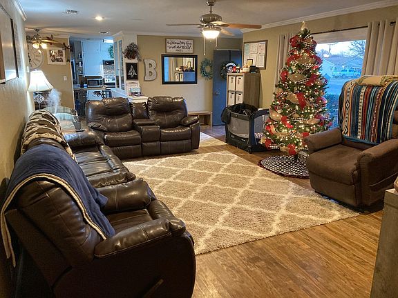 Your family will enjoy this really nice 3 bedroom, remodeled 2 bath home! There are original hardwood floors plus hard surface wood type floors in most of the home. The living room is spacious with the kitchen and utility conveniently located. There is a super cute sliding barn door that opens to a big pantry, new stove and dishwasher. It has a sunroom that has multiple functions. The fenced backyard has a cellar, detached double garage & an additional single garage for added storage. New roof, water heater, heating and cooling units in 2018.