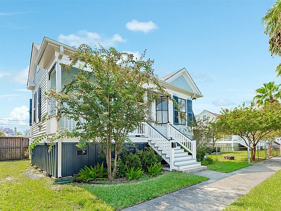 Charming 1894 built home that is located in sought after East End Historic District. Near UTMB, beach and downtown Galveston. This 3 bedroom 2 bath home exudes charm as you enter from the inviting porch. Open kitchen, dining and living area with spacious living space. Kitchen with quartz counters, breakfast bar for seating, stainless appliances, gas stove and wine or beverage refrigerator. Dining space is next to kitchen with tons of windows for natural light. Primary bedroom suite has updated bath with large walk in shower, decorative tile and walk in closet. Secondary bath has been updated with soaking tub with shower. Exterior features has driveway with gate and side yard with back balcony.