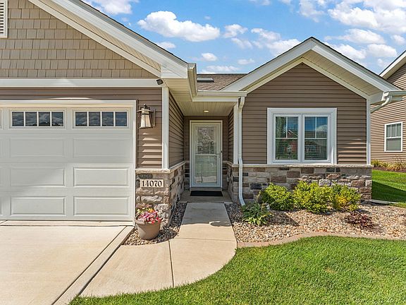 Welcome to this maintenance-free, meticulously maintained 2 bedroom, 2 full bathroom half-duplex offering 1,525 sq. ft. of one-level living. Step inside to a bright and open living room with vaulted ceilings that flows seamlessly into the kitchen, complete with granite countertops, stainless steel appliances, tile backsplash, and a spacious pantry. Durable LifeProof vinyl flooring runs throughout, combining style with low maintenance.The primary suite boasts a private en suite featuring a walk-in shower, linen closet, and walk-in closet, providing both comfort and convenience. Enjoy year-round living in the Florida room or relax outside on the covered porch, all while appreciating the privacy of no backside neighbors.Additional highlights include a heated garage with a pull-down screen door, beautifully landscaped exterior with rubber mulch, and thoughtful touches throughout. Truly move-in ready, maintenance-free, one-level living that offers both quality and peace of mind.