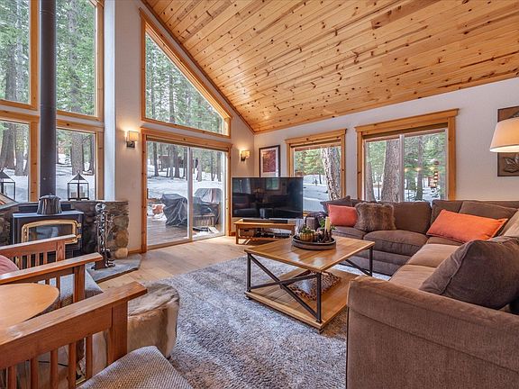 Tucked among the trees in Tahoe Donner, this inviting 3-bedroom, 3-bath (2 ensuite) cabin offers a perfect blend of warmth and modern convenience. Thoughtfully designed with two ensuite bedrooms and and a spacious loft with built ins for 2 person office space, the home provides flexibility for relaxing, entertaining and productivity. The great room boasts vaulted pine ceilings, engineered wood floors, and a striking wall of windows, filling the space with natural light and serene forested views. The updated kitchen and bathrooms add contemporary comfort, while cost efficient hydronic heating with remote access adds convenience. Enjoy seamless indoor-outdoor living with an expansive south facing deck and patio, ready for entertaining surrounded by nature. A large garage and ample storage provide space for all your gear. Centrally located near Tahoe Donner’s wealth of amenities, including pools, tennis courts, golf course, extensive trails, and private Donner Lake beach access. This stunning chalet is a welcoming retreat in a prime mountain setting—ready to be your home base for adventure.