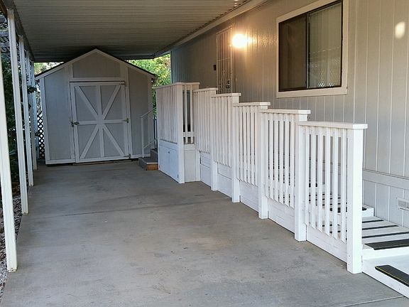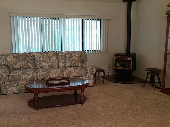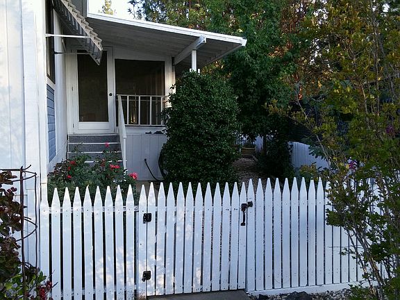 This well-cared for manufactured home was built in 1990 and has large rooms throughout. The interior walls are sheet-rocked (no wood paneling!!!). Newer roof / installed 12/2013, newer HVAC system / installed 9/2012, newer refrigerator. Kitchen has lots of cupboards and bar seating. Dining room has bench seating under large windows with wood blinds and storage cupboards underneath. Living room is light and bright and has a free standing pellet stove with thermostat control. The Master bedroom is quite large and has a walk-in closet, plus a smaller closet. The Master bathroom has a separate mirrored vanity station, garden tub and a toilet room with linen closet. Bedroom # 2 is roomy and has a double door closet. The guest bathroom has a walk-in shower, ledge seat, grab bar and a detachable shower head. A large screened-in patio overlooks the fully fenced, low maintenance garden area. (patio is 'not' included in home's sq.ftg.) A platform ramp with low rise stairs was a recent addition to the home. The big barn-style shed with overhead lighting has a wide front door, plus another door on the garden-equipment side. Clean and well-maintained, this home is Move-In Ready!
