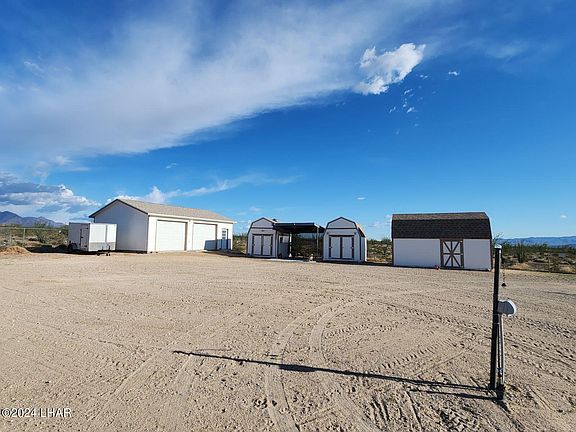 Lovely 3-bedroom ranch style home on 2.35 Acres * 32Ft deep air conditioned / heated 2-car garage * Ready for a new family* GRID POWER AND PAVED ACCESS * ONLY 7-miles to Interstate-40 * 35-minutes to Lake Havasu City or Kingman * Amazing mountain views from every room of this spacious 1680 Sq Ft home * Features new tile floors * Fresh paint * vaulted ceilings, spacious kitchen, living room, and indoor laundry * The master suite has dual sinks, separate shower, relaxing garden tub, attached study; perfect for a home office or nursery * New shingled roof on all buildings * (3) 10'x10' storage sheds * 5,000-gallon water tanks are stored inside another building to protect the pressure pump and provide additional storage * Monitored alarm system * Security doors for privacy * Automatic solar powered security gate at front of home * Plenty of room to homestead * Take a virtual tour of this beautiful home.