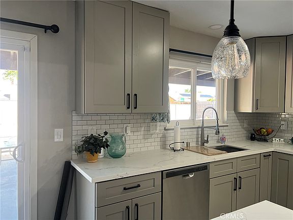 The kitchen is equipped with quartz countertops, new cabinetry with easy close features, large pantry, dishwasher, microwave, drop in stove, island with hood and refrigerator. The rear has a very large patio with a large cover for your outdoor parties. The possibilities are endless with this home. Your client will not be disappointed.