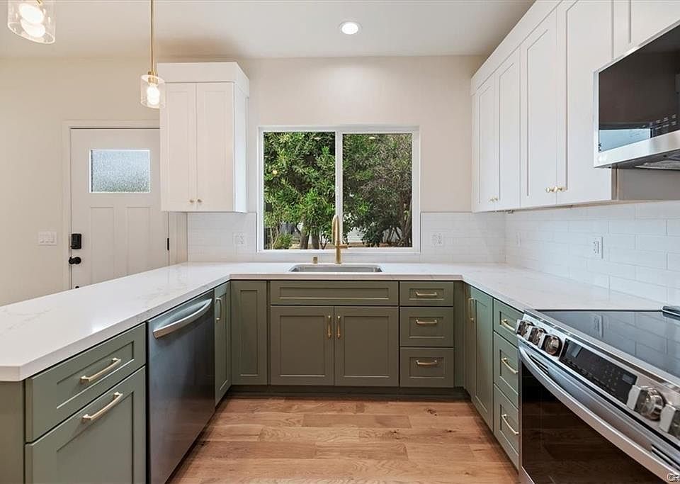 Custom cabinetryQuartz countertopsLg appliancesHardwood floors