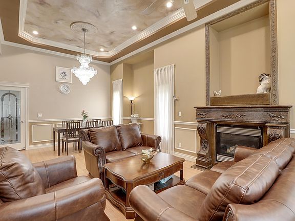 High-ceiling entry foyerOpen-concept kitchenGranite countertopsStainless steel appliancesSpacious family roomDining areaJacuzzi and standing shower