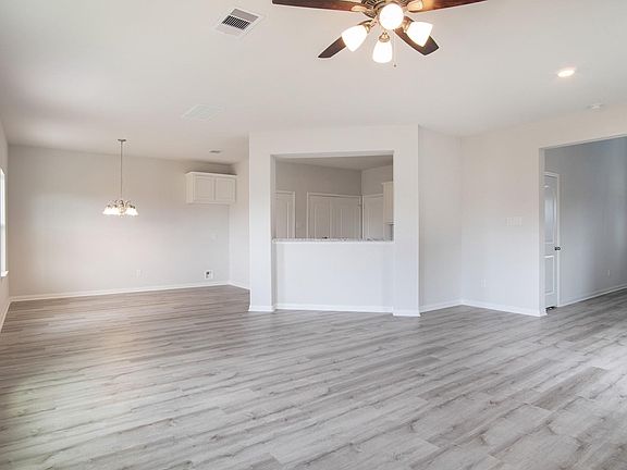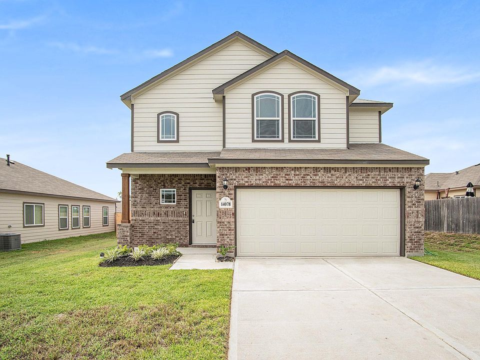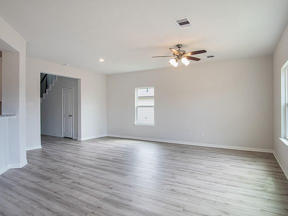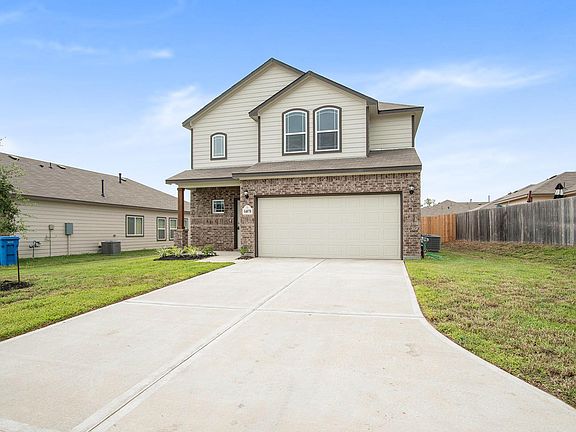 Gorgeous 2 story with open floor plan and high ceilings. 4 bedrooms and 2.5 baths 2car . Beautiful kitchen w/White cabinets, designer tile backsplash, granite counters and large serving bar overlooking an oversized family room. Breakfast is big enough for a table for 8! Primary suite is upstairs and offers his and her vanities, separate garden tub and shower. Vinyl wood plank downstairs carpet in bedrooms upstairs! Home includes a covered patio, wrought iron spindles, stainless steel appliances, a fenced backyard and so much more! Sought after Conroe ISD schools with super low tax rate! BUILDER CLOSE OUT!! Hurry, Call Today!