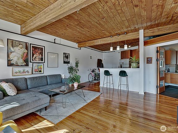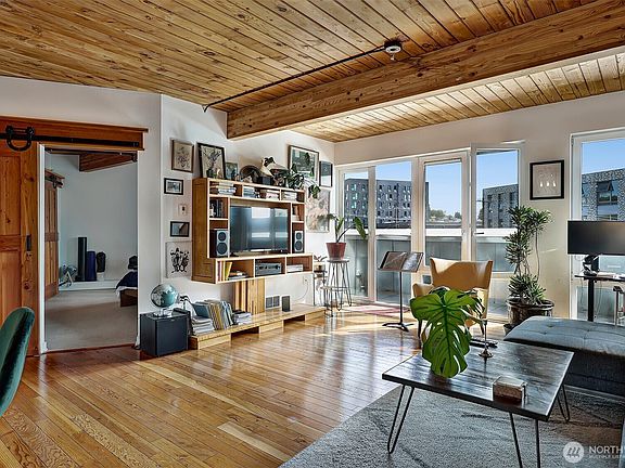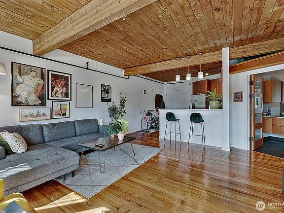 Modern finishes fashioned against an intriguing historical backdrop. Customized loft space set within a stunningly restored 1909 mercantile warehouse. Open floor plan w/every space maximized w/sliding barn doors & clever built-ins. Reclaimed fir hardwoods & exposed ceiling beams. Generous floor to ceiling windows in the living room with direct access to expansive south facing private deck w/territorial views. True one bedroom + generous closet. Garage parking space, steps away from all that Capitol Hill has to offer.