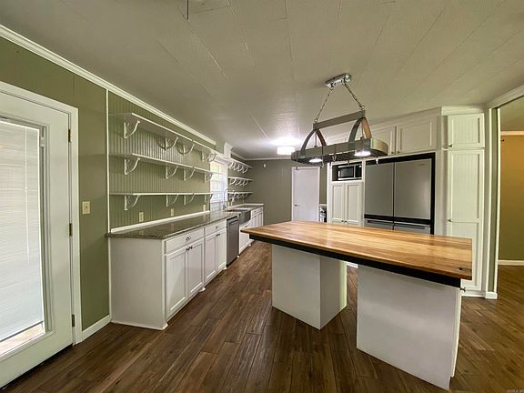 Welcome to this delightful 3-bedroom, 2-bath home boasting 1,866 sqft of comfortable living space. From the moment you step inside you'll appreciate the thoughtful updates and inviting features. Open concept with spacious living, dining and kitchen areas seamlessly flow together, creating an ideal space for family gatherings and entertaining. The wood laminate flooring adds warmth and durability. Modern kitchen with granite countertops, custom island, display shelving and all stainless-steel appliances including refrigerator are included. Both bathrooms have been refreshed, ensuring comfort and style. Laundry room with door to backyard. An outdoor oasis with covered back patio, inground swimming pool for endless summer fun. 20x30 workshop with loft storage, roll-up door, workbenches, and wood-burning stove perfect for hobbies, storage or a home office.