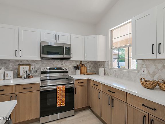 Step into this beautifully remodeled single-level home featuring 3 bedrooms and 2 modern bathrooms. Located in a desirable neighborhood with no HOA, this gem offers a newly updated kitchen with stainless steel appliances, sleek countertops, and stylish cabinetry. The open floor plan flows seamlessly into the living area, perfect for entertaining. Relax in the spacious master suite with a private en-suite bath with dual sinks, which is split from the other bedrooms. Enjoy outdoor living in the private backyard with a sparkling pool, complete with brand new pump and filter, and plenty of space for lounging or hosting BBQs. With fresh paint, updated flooring, and contemporary finishes throughout, this home is move-in ready and waiting for you!