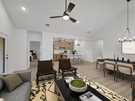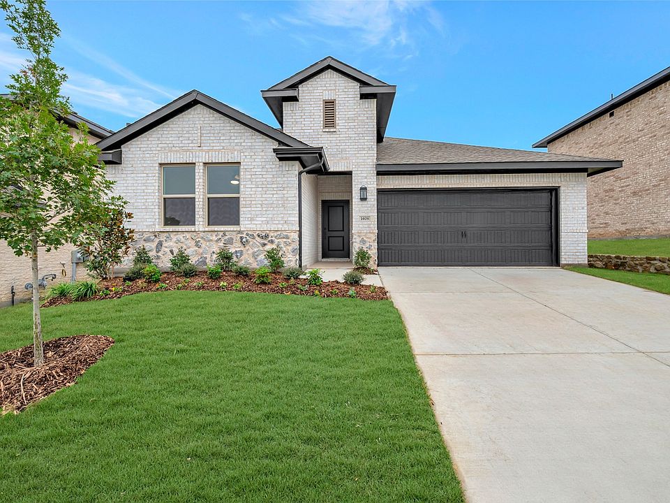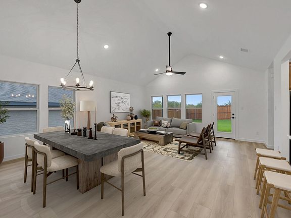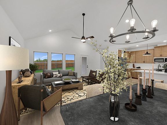 Amazing new construction single-story home in Howe ISD! Move in ready single-story with an Extra Suite Plus - including private bath and living room. This professionally curated home with K. Hovnanian's desirable Farmhouse looks palette showcases light stain shaker cabinets, quartz countertops, luxury vinyl plank flooring, and black metal shade pendant lights. Spend time in the primary suite, your own personal oasis located at the back of the home with large walk-in closet and private ensuite bath. Wind down at the end of the day by spending time on the shady covered patio, just off the main living space.