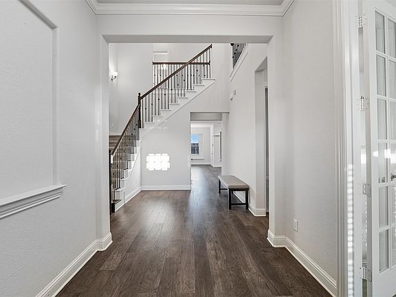 Discover the epitome of elegance in this exquisite 5-bedroom residence nestled within the prestigious M3 Ranch community of Mansfield, TX. This remarkable abode, nearly new and lovingly maintained by its original owner, boasts a generous 5-bedroom, 3-bathroom layout spread across two stories. Upon entering this home, be greeted by a magnificent entryway with towering ceilings and a lengthy foyer adorned with chic modern finishes that exude a sense of grandeur. The sunlit home office, versatile enough to serve as a fifth bedroom or flexible space, adds to the home's allure. Culinary enthusiasts will revel in the chef's kitchen, featuring a gas cooktop, bespoke luxury cabinetry, premium granite countertops, and a spacious island that seamlessly connects to the open-concept living and dining areas—ideal for entertaining or cherished family gatherings. The expansive primary suite is a sanctuary of comfort, complemented by a peacefully indulgent bathroom with dual sinks, a garden tub, a separate shower, and an expansive walk-in closet. The floor plan thoughtfully includes two full bedrooms and bathrooms on the main level, perfect for accommodating guests or multigenerational family living. Ascend to the upper level to discover a versatile game room or secondary living area, along with two generously sized bedrooms and a full bath with double vanities, perfect for family or guests. Year-round outdoor enjoyment is ensured with an enclosed patio. The durable screens provide a sense of openness while ensuring privacy and protection from the elements, allowing you to savor the outdoors in any weather. The backyard offers ample space for a future pool, outdoor kitchen, or both. The expansive 3-car garage is a haven for vehicles, tools, and storage needs. Conveniently located just moments from H-E-B, top-rated Mansfield ISD schools, shopping, dining, and major highways.