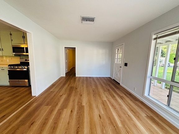 Step inside to discover an interior graced with new luxury flooring that extends seamlessly throughout the entire house. The spacious kitchen serves as the heart of the home, featuring ample counter space and new stainless steel appliances, making it an ideal setting for cooking and entertaining. Along the hallway, you will find two convenient linen closets, providing practical storage solutions for your household essentials.
