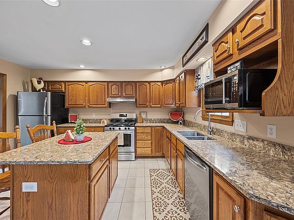 This 4 BR, 3.5 bath home is loaded with amenities & upgrades! The all-brick exterior welcomes you with an inviting covered entry leading into the home's immaculate interior. The kitchen boasts upgraded cabinets, quartz counter tops, new stainless appliances & sliding door to the ground level patio with/retractable awning! The main level is home to HW floors, ceramic tile & wall to wall carpeting. A gas fireplace adds a touch of coziness to the FamRm, while the bedrooms provide ample space & natural lighting. The primary bedrm offers a beautiful, updated ensuite! All baths are equally well-appointed, featuring top of the line plumbing fixtures! The low/lev includes a family room & Full bath! Radiant heated flrs keep the garage and low/levl toasty all through the year! Outside, you'll find a level backyard, concrete patio, drive & steps. The covered patio provides a comfortable space for relaxation or outdoor entertaining, seamlessly blending the indoor & outdoor living experiences.