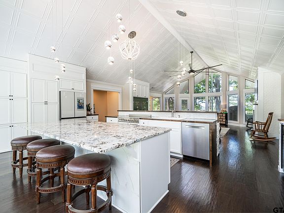 Take a look at this mountain top home located in the beautiful piney woods of East Texas. Enjoy views that stretch for miles and miles overlooking the neighboring towns and communities, while you sit in your heated indoor pool in pure privacy and tranquility. This home has been renovated in the past year and is truly stunning, grand vaulted ceilings in the main room and kitchen area with views from every angle in the room. This is a property you must see in person to fully capture the jaw dropping scenery. Talk about being on top of the world while having an abundance of space to entertain to your hearts desire, or not. You can keep it private as this home is nestled in the woods up a long paved driveway. You won't find more private grounds on 16 acres than this property offers. If that's not enough for you this property also offers a fully heated and cooled 6 car garage perfect for those special vehicles you have or even more entertaining/storage space. Let's take a drive up the winding hillside driveway to see this beauty, you will not regret it.
