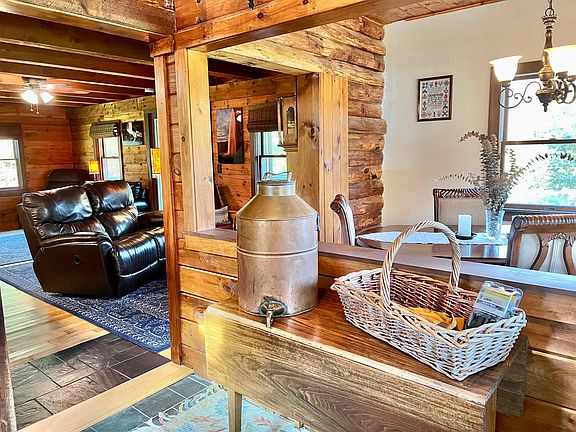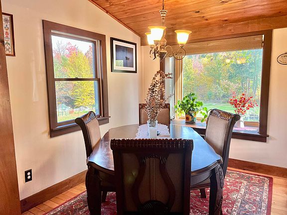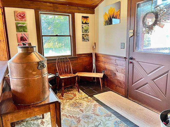 This three bedroom, two bath Log home sits on 20.9 surveyed acres. Inside, an updated kitchen with stainless steel appliances, tiled floors and granite countertops. The main level offers a dining room, living room, first floor office, and a three-quarter bath with laundry hook-ups. Stay cozy warm with radiant floor heating and updated pellet stove. The second level offers two bedrooms and a primary en-suite with its own balcony. You will enjoy the enclosed back porch which makes the perfect place to sit and visit with family and friends. Outside, a two bay garage with tons of storage, a shed and an outdoor sauna. There is an enclosed garden space with raised garden beds, fruit trees, a small greenhouse, and a rustic old cabin with bunkbeds perfect for a play house or hunting camp. This property has direct access to the VASA trail system and is located .4 miles on a Class IV road. Just minutes to Lake Fairlee and 3.8 miles from the town beach and boat ramp.