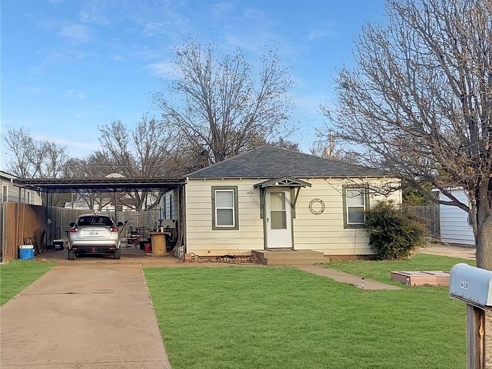 Beautiful 3 Bedroom, 1.5 bath siding home in Sayre Oklahoma! Large Living Room, Separate Dining Area, Spacious Laundry Rom, New Windows, New Roof, Storm Shelter Basement, Car Port, Siding Exterior. Large Back Yard With Pecan Tree, Fully Privacy Fenced in the Backyard.