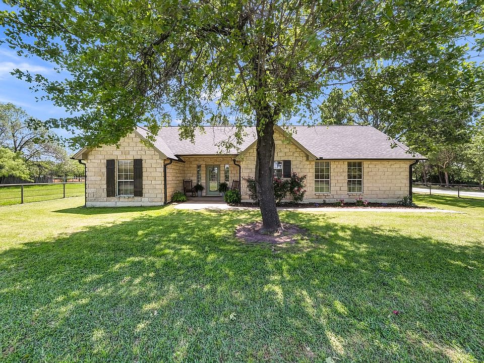 BRING THE HORSES OR FFA PROJECTS! Situated on a sprawling 5-acre lot, this property boasts a charming 3-bedroom, 2-bathroom home that exudes comfort and tranquility. A large 2-car carport with an attached enclosed storage closet provides ample space for vehicles and outdoor equipment. Enjoy the serene outdoors on the expansive covered patio, surrounded by beautifully landscaped and meticulously cared-for front and back yards, completely fenced. The property is fully enclosed with perimeter fencing and features a gated entrance for added exclusivity and peace of mind. For those with livestock or equipment, there are barns ready to accommodate your needs. Recent upgrades include a new central HVAC system and roof, ensuring comfort and reliability for years to come. Nestled in a convenient location just minutes from Mineral Wells, this well-maintained property offers a perfect blend of rural charm and modern comfort.