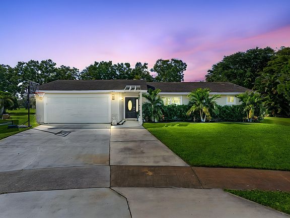 Experience the best of Wellington living in this beautifully renovated 3-bedroom, 2.5-bath ranch-style home, perfectly situated on a peaceful cul-de-sac with no HOA. Just minutes from top-rated schools, the Wellington Mall, dining, parks, and equestrian venues, this home offers unmatched convenience in one of the area's most desirable communities. Inside, you'll find a bright split floor plan with modern finishes throughout, including a fully renovated kitchen featuring brand new quartz countertops, brand-new stainless-steel appliances, new cabinetry, and an impressive 8-foot granite island with built-in electric, perfect for hosting and everyday living. The living spaces offer new wood-style flooring and updated lighting, creating a fresh, contemporary feel. Step outside to your own private backyard oasis with a fully fenced yard and a beautifully resurfaced salt-chlorinated pool, ideal for enjoying the Florida sunshine. This home also includes numerous high-value upgrades such as solar panels, new hurricane impact windows, a new A/C unit, a new electrical panel, a new garage door system, new bedroom fans, new front room flooring, and new island lighting. With a 2011 roof and extensive updates throughout, this home is truly move-in ready. Modern upgrades, a prime location, a private pool retreat, and no HOA make this Wellington gem a must-see.