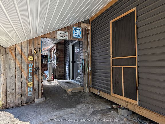 Welcome to 1408 Pearceley Rd, an off-grid dwelling, located in an unorganized township in the heart of the Almaguin Highlands. Private 6.5 acre lot surrounded by trees with natural stone bedrock outcroppings adding to the appeal, and over a thousand acres of crown land backing onto or surrounding the property. Enter this 2 bedroom home through the covered entrance into a large heated sun porch with vaulted ceiling and cookstove to keep you warm on those chilly nights. Spacious kitchen featuring metal cabinets, a J.A. Roby Cookstove, and propane appliances. Bright, comfy living room with walkout to backyard and 16' wide rear deck. Large 3 pc bathroom addition built in 2021, with main floor laundry. Utility room houses a hot water on demand unit & a six year old 3,050 Watt 10 panel solar system with 2 spare batteries that easily looks after the household needs. Drilled well, septic, 20' sea can, and detached garage with double lean-tos for all your tools & toys. Furnishings can stay. Lots to appreciate here!