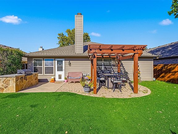 Step outside and experience the heart of Texas living. Your backyard oasis features lush turf with premium substrate and an irrigation system, a custom outdoor kitchen with built-in grill, and space designed for unforgettable evenings under the stars. A mature Cottonwood tree graces the front yard, welcoming you home with shade and charm.