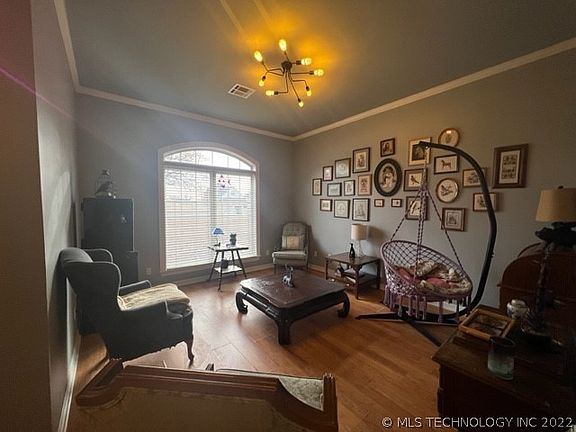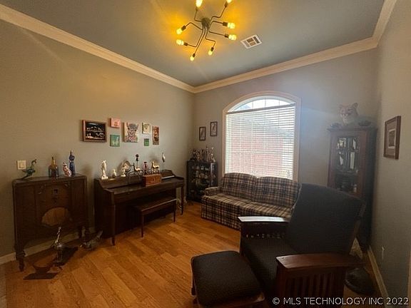 PRESTIGIOUS STERLING HILLS ADDITION IN FORT GIBSON, 4 BED, 3 BATHS, 2723 SQ FT, 9' CEILINGS, TRAY CEILINGS, LOTS OF CROWN MOLDING, FORMAL LIVING, FORMAL DINING, OFFICE/LIBRARY, KITCHEN OPEN TO DEN W/FIREPLACE, KITCHEN HAS BREAKFAST BAR, BREAKFAST NOOK, NEWER QUARTZ COUNTERTOPS, NEWER APPLIANCES, MASTER BEDROOM ENSUITE, WITH SHOWER, JACUZZI TUB, 2 CLOSETS, DOOR TO PATIO;  SPLIT BEDROOMS, LARGE UTILITY ROOM HAS COUNTERTOP FOR FOLDING & SINK;  PRIVACY FENCE, TRANSOM WINDOWS, COME MAKE THIS YOUR NEW HOME.