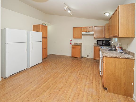 Spacious 4 bedroom 2 bath townhouse. Lots of natural light, open floorplan from kitchen to living room, large bedrooms, laundry in unit and 4 car garage. Vaulted ceilings. Walkable to WMU. Close to dining, shopping and entertainment.