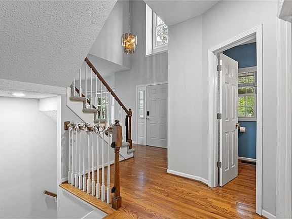 If you're looking for a gorgeous brick Tudor-style home with enormous bedrooms, an open kitchen and living area, an incredible lot with the coolest custom treehouse, and a mostly finished basement with great natural light, you have come to the right place! Original hardwood floors and a stunning two-story entry welcome you in to the main level, where you will also find the formal dining room, a bonus room, powder room with custom wallpaper, oversized laundry/mud room that conveniently connects to the oversized three-car garage. The living room and kitchen are even bigger in person, and the fireplace is perfect for stockings, making s'mores from the comfort of your living room, and getting cozy on chilly autumn and winter nights. Venture outside through the French doors to find a deck that is perfect for grilling out, entertaining, and enjoying your peaceful wooded backyard. The treehouse is any kid's (or even any adult's) dream, with a climbing wall, TWO slides, and multiple platforms to ensure that everyone has plenty of room to play. A garden rests at the top of the hill, green thumbs rejoice! Back inside on the upper level, you'll find truly massive bedrooms. The primary suite is the true piece de resistance! Featuring vaulted ceilings, tons of natural light, new flooring in the bathroom, a walk-in closet, double vanities, a luxurious corner jacuzzi, and a separate powder room with a large shower, this bedroom is the true definition of a "retreat". Two of the bedrooms feature a Jack and Jill bath with vanities in each of the bedrooms. Another oversized bedroom has its own full bath, which would be great for a second primary suite or a shared bedroom. The basement features a huge finished area perfect for kids, movie nights, gym equipment. There is also a small nonconforming bedroom with extra storage, and the utility area is large and perfect for off-season items. This home is truly one of a kind, see for yourself before it's too late!