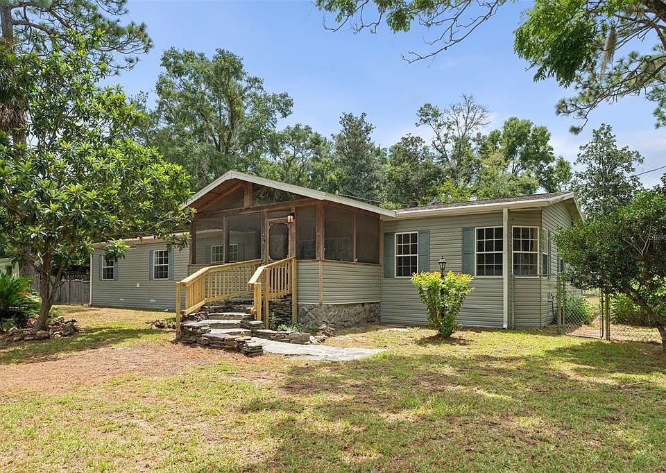 Spacious and beautifully renovated, this 2002 manufactured home offers 2,356 sq ft of living space on a peaceful .48-acre lot in a quiet Williston neighborhood—just under 30 minutes to Gainesville. Inside, enjoy a fresh, modern interior with luxury vinyl plank flooring throughout and tile in the screened porch, main closet, and laundry room. The open floor plan features a welcoming living area with fireplace, a bright kitchen and dining space with access to both a charming front screened porch and a spacious back covered porch, plus 4 generous bedrooms, 2 full baths, and a utility sink in the laundry room. Major 2025 upgrades include a brand-new asphalt roof, new HVAC system with 5-ton AC unit, and new hot water heater. Built with 2x6 exterior walls, the home also offers a fenced backyard with butterfly garden landscaping, flagstone entry walkway, storage building, and kennel building—perfect for pets or hobbies. Conveniently located near Williston’s local amenities and within easy reach of Gainesville’s job market, universities, and medical centers, as well as Cedar Key’s Gulf Coast beaches, Devil’s Den Spring, and Goethe State Forest, this move-in ready home offers the ideal blend of small-town charm and modern convenience.