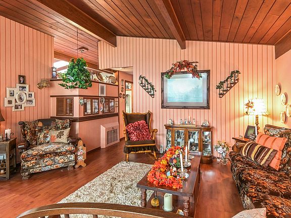 Backyard lanePost and beamVaulted ceilingsStrawberry themed kitchenBeautiful big private deckPark like yard