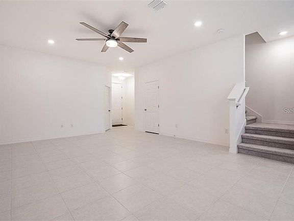 This newer town home in the subdivision of Fishhawk West. The Kennedy at Park Square, floor plan features, 3 bedrooms, 2.5 bath, tech area and screened lanai with a 1 car garage. It features A huge living room with tile floors and ceiling fan. The kitchen boasts grey cabinets, quartz countertops and gas cooking all stainless-steel appliances. Recessed LED lighting throughout. The second floor consists of the bedrooms and a entertainment area. The bedrooms are split between front and rear. To the rear you have the master bedroom, featuring an expansive walk-in closet and a well-appointed en-suite bath with granite dual sink vanity and tiled shower enclosure. The remaining bedrooms and 2nd full bathroom are located on the other side giving everyone their own space. All bedrooms have ceiling fans and the utility enjoys front end washer & dryer. There are fabulous amenities offered in the area and loads of trails , Parks, Water Park etc. Top rated schools. Home is recently repainted.
