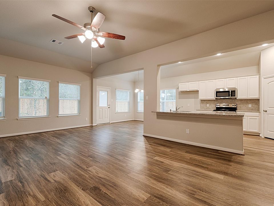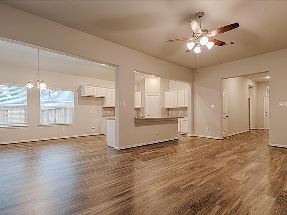 Stunning 1 Story Home! Vinyl plank flooring throughout. Carpet in bedrooms only and tile floor in master bath. Open floor with oversized island kitchen and breakfast open to a family room with lots of windows, fabulous kitchen with custom backsplash, stainless steel appliances, pantry and breakfast area with lots of windows. Master suite with high ceilings, master bath with double sinks, garden tub and separate shower w/big walk-in closet. Home also features 16 seer AC, fully sodded front and side yard, smoke detectors, 6 foot privacy fence in backyard. Low Tax Rate! Conroe ISD! Call today