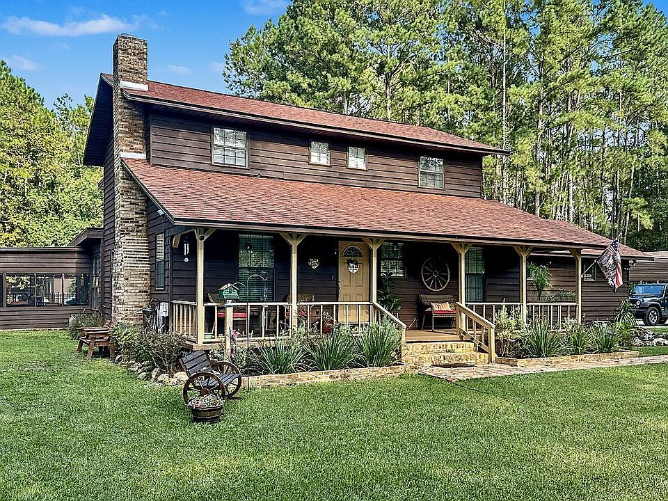Surrounded by majestic oak, maple, and southern shade trees, this beautifully updated two-story cedar home offers the perfect blend of privacy, charm, and country comfort. Set on more than 5 acres, the property features a newly remodeled in-ground pool with serene country landscaping, as well as mature fruit trees— including a 25-year-old orange tree that produces abundantly each season. RV/Boat carport-storage