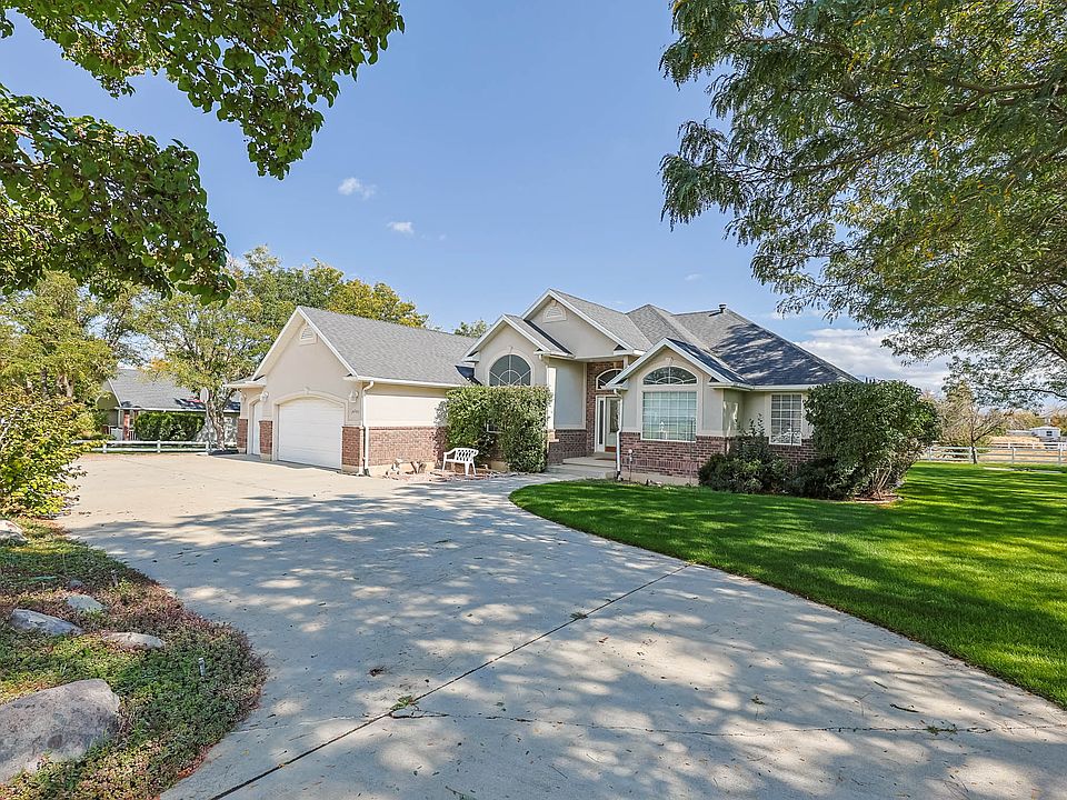 This gorgeous CLEAN 1 acre home sits in a mature, quiet, horse property neighborhood in Bluffdale nestled in the esteemed Deer Mountain Estates community. It has a 3 Car Garage, RV Parking, Beautiful Landscaping, Covered Patio and plenty of room for your horses if that is your thing. This 4,386 sq ft home has vaulted ceilings on the main level and generous amounts of picturesque windows that fill the house with natural light! This home has a large kitchen and the dining area opens to a private patio, overlooking the backyard with amazing mountain views. The spacious Master Suite features a Master Bathroom with 2 walk-in closets. The walk-out basement is ready to entertain with a large family room and a small kitchen area, that could also be used for a Mother-in-Law apartment. The basement also includes 4 bedrooms, a full bathroom, and lots of storage! This home has a new roof that is 2 years old, and the A/C and furnace are only 4 years old. The yard is dreamy with lots of mature trees and beautiful landscaping! Host all the parties you can handle or just enjoy the peace and quiet of your private yard! Convenient access to shopping, dining, entertainment, parks, world class ski resorts, hiking, biking trails, Silicon Slopes and the Salt Lake International Airport.
