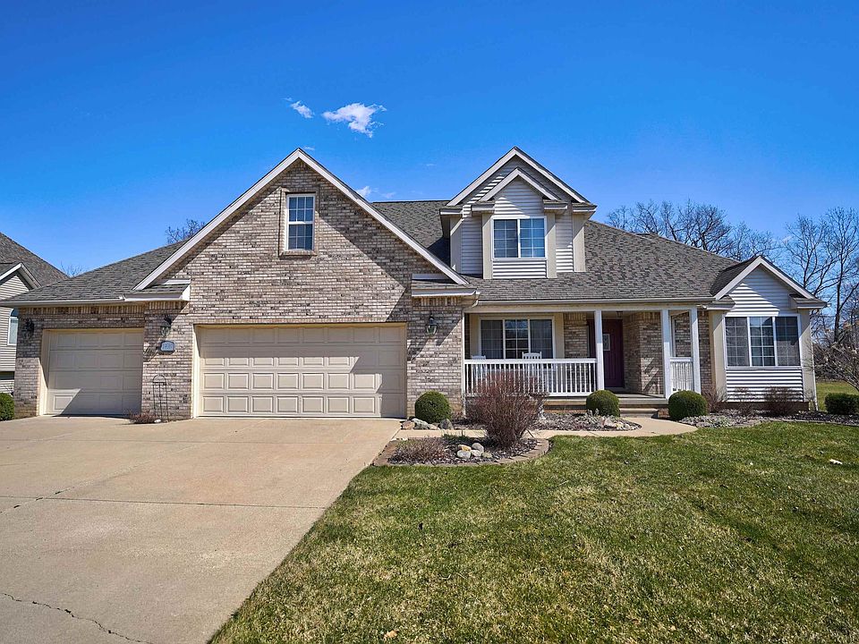 This home features 4 large bedrooms with an ensuite primary bedroom located on the main level. Separate dining room, eat in kitchen, granite counter tops, stainless steel appliances which stay with the sale, first floor laundry with cabinets, hardwood flooring, breath taking living area with 13 ft. stacked windows, two way fireplace to enjoy in living area and kitchen/dining area, finished bonus room and trex decking. Basement plumbed for additional bath and egress windows. 3 car finished garage, brick and vinyl exterior all nestled in the peaceful neighborhood of Ponemah Lake Estates with lake views. Seller will entertain all reasonable offers. .