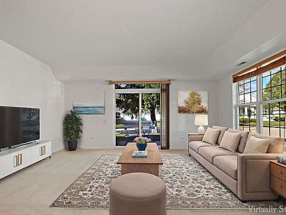 Welcome to this bright and inviting 2-bedroom, 2-bath end unit located in the highly sought-after Del Webb Sun City Huntley--a premier active adult community designed for resort-style living. Step inside to discover a spacious, open-concept layout filled with natural light and peaceful views. Brand NEW CARPETING and fresh PROFESSIONAL PAINTING throughout make this home sparkle! The kitchen offers plenty of counter space and storage, perfect for both everyday living and entertaining. The adjoining dining and living areas flow effortlessly to a private patio, where you can relax with your morning coffee or enjoy tranquil evenings outdoors. The primary suite provides a comfortable retreat with a large walk-in closet and a private bath, while the second bedroom and full hall bath are ideal for guests or a home office. As an end unit, you'll love the added privacy, extra windows, and an airy, open feel throughout. Enjoy the unmatched lifestyle that comes with living in Del Webb including state-of-the-art fitness centers, pools, golf, pickleball, walking trails, clubs, and endless social opportunities--all just steps from your door. Experience the perfect blend of comfort, convenience, and community living--this is the home you've been waiting for!