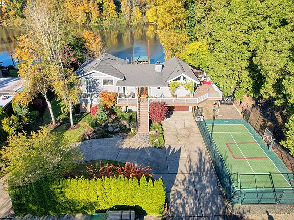 Welcome to this one-of-a kind property located in the “no-wake” zone on the banks of the Willamette River. Spectacular landscaping greets you upon entrance to the property, which includes a sport court and over-sized driveway with a gorgeous fountain centerpiece, and tons of parking. The stunning open floor plan on the main level of the home includes a light and bright living room, large dining area, and an updated kitchen that are built for entertaining. The kitchen was renovated in 2023 and upgrades include new counter tops, backsplash, sinks/faucets, hardware, commercial-grade ice-maker, lighting, ceiling fan, and painted cabinets. Dual primary suites on separate levels add a layer of privacy, and upgrades include bathroom renovations, and new paint, carpet, and molding in the bedrooms. The upstairs suite has a lovely deck off it, and the downstairs owner's suite has been totally renovated, including the bathroom and private deck with a sound system. The bonus room on the lower level is perfect for year-round fun with plenty of space for whatever you can imagine, as well as separate entrances for potential living spaces. The outside of this home offers even more entertainment and relaxation value, starting with a massive deck, overlooking the river. There is plenty of storage space for your toys, a greenhouse in the side yard, beautiful landscaping, extensive outdoor lighting throughout, a private dock, and a new(2022) walkway to the dock. Additional features include a new(2024) roof, new(2024) water system, gas hookups for a BBQ, new electrical for the hot tub and RV, and so many more. Opportunities to own a home like this don’t come around very often. Now is the time to start making your dreams come true!