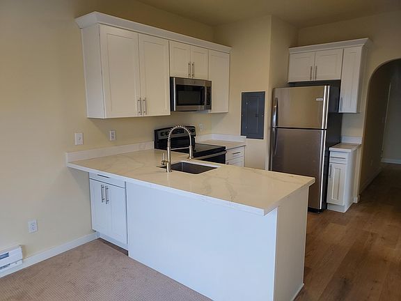 2 bed & 1 bath end unit is on the upper floor with territorial view. Newly remodeled from top to bottom, kitchen features shaker cabinets with quartz slab counters, stainless steel appliances. Hugh master bedroom with walk-in closet. Full bath with surround tile & tile flooring. Washer/dryer in the unit. Hardwood flooring in entry & kitchen. High ceilings throughout. Double pane vinyl windows. Deck with expansive view. 1 uncovered parking space. No pets. No smoking. No smoking. Water/sewer & garbage included. $50.00 / Adult Non-Refundable Application Fee. Income qualify (3x Monthly Rent), credit check (700+). Move in: 1st month rent & security deposit ($2,400.00).