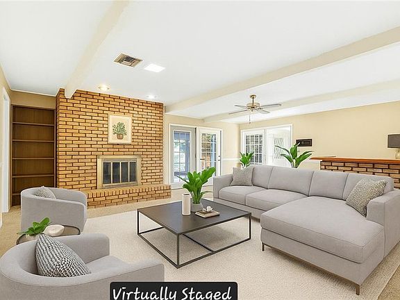 The layout features formal living and dining rooms, a spacious den with a brick fireplace, and a bright sunroom that fills the home with natural light. The large backyard is a great size for gatherings, while the 613-square-foot powered and plumbed garage or workshop provides flexibility for a home gym, studio, or guest suite. The long driveway offers plenty of room for parking and outdoor entertaining.