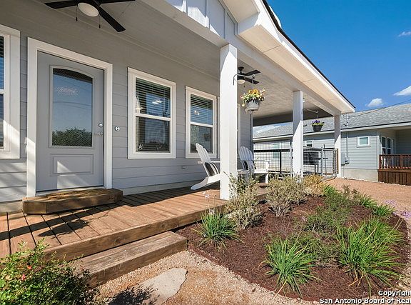 Welcome home to quaint home on .29 acres just minutes from Guadalupe River & Canyon Lake. This nearly new home has many extra features, distressed barn board wall in MB & island kitchen, granite countertops, Low E windows, radiant barrier, programmable thermostat, smart doorbell, covered porch, gated back yard & covered carport, stainless steel appliances, nicely landscaped, storage shed, fenced & more. Boat ramp minutes away to enjoy fishing, boating, jet skis, etc. Buyers will not be disappointed!