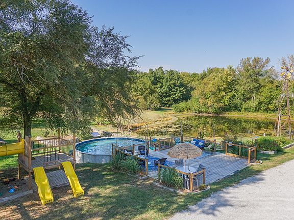 Calling all buyers searching for something truly extraordinary in Bloomington. This one-of-a-kind property sits on over 5.2 acres in town and offers an incredible combination of space, updates, and amenities you will not find anywhere else. Featuring 7 bedrooms and 5.5 bathrooms, this home is ideal for large families, multi-generational living, or anyone craving room to spread out. Step inside to discover a massive 52x69 indoor pool room complete with a 26x36 inground pool, wet bar, sauna, full bath, and a beautiful waterfall feature with a built-in fish tank, creating the perfect space for entertaining. The pool area is being sold as is, but the possibilities are endless for recreation and relaxation. Additional highlights include a 6-car (3 tandem) garage, 2 kitchens, 2 laundry rooms, multiple fireplaces, and tons of recent updates. The home has been beautifully remodeled over the last few years, featuring a $30,000 tri-zoned HVAC system installed by Nordine in 2021, new ductwork, updated electrical, new soffit and fascia, and two newer water heaters (75-gallon and 45-gallon). Updates also include bedroom remodels, bathroom remodels, the addition of a second kitchen, and newly added bedrooms. This home also features a high-grade metal tile roof, designed to look like traditional shingles but built from durable, weather-resistant steel. Known for its longevity, energy efficiency, and low maintenance, this type of roof can last 50 years or more, offering both beauty and peace of mind. Enjoy peaceful views of the large pond, creek, and mature trees from your upstairs balcony. Outdoors, you will find a new saltwater pool installed in 2023 with a new deck, plus plenty of space for gardening or even chickens since the property is unincorporated. This home is on public water and public sewer. The seller is currently installing a new sewer line from the home to the road, which will be completed prior to closing. Whether you are looking for a home with an in-law suite, a multi-generational layout, or simply a unique private retreat in the heart of Bloomington, this property is truly one of a kind.
