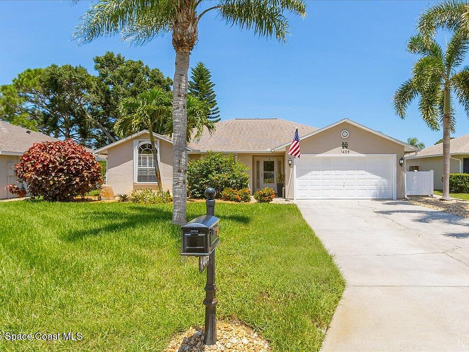 Welcome to your waterfront sanctuary in the sought-after Holiday Springs at Suntree community! Everything has been done for you! Brand new A/C and Ducts , 2019 Roof, 2021 Water Heater. Remodeled Kitchen and Primary Bathroom, tile Throughout AND a transferrable termite bond! This beautifully maintained, single-story residence offers 1,563 sq ft of bright, open living with a tranquil water views that invites nature right to your doorstep. Enjoy the cranes, ducks & turtles playing out back from your enclosed patio with new windows! You'll have additional peace of mind with the accordion hurricane shutters that will make storm prep a breeze! Set within a peaceful community, this home also offers access to community amenities including a clubhouse, playground, fitness facilities, tennis courts, and jogging paths. Close to top-rated schools, nearby shopping and dining -you'll enjoy all the benefits of Suntree without the high HOA bills and CDD taxes