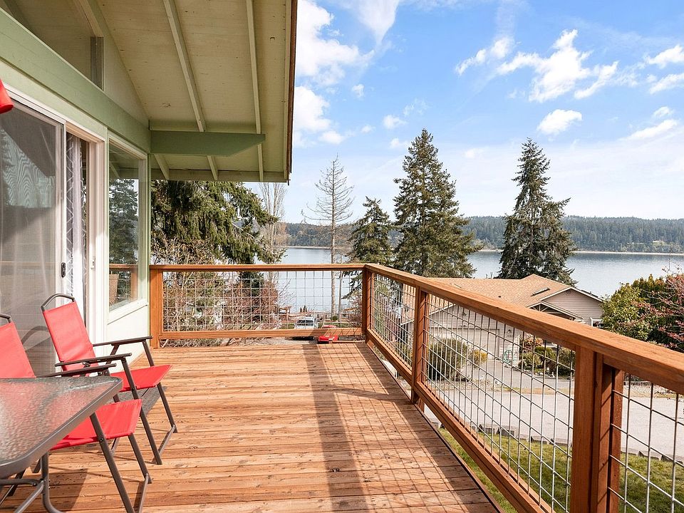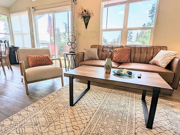 Spacious Family retreat w ocean view. Great family getaway near golf, trails, beachfront, with water views, office space, carport, fenced backyard, and close to amenities. Fully furnished.