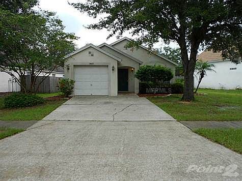 Cute 2 bedroom, 2 bathroom home with 1 car garage. Bright open floor plan with vaulted ceilings & ceiling fans throughout. Enjoy entertaining in the large living room in the front of the home. Kitchen off living room features ceramic tile flooring & eat in space. Master bedroom has walk in closet. Enjoy the covered & fully enclosed lanai. Backyard is privacy fenced. Located in the Brentwood Hills Community which includes pool, clubhouse, playground & tennis courts. Great location just off Highway 60 with a short drive to shopping & restaurants.