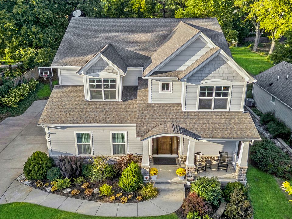 Welcome to 1409 E Harrison Ave! This stunning 4-bedroom, 5-bathroom residence was built by Windham Homes in 2013 and sits on over a half-acre lot in charming suburban Wheaton. A gracious blend of sophistication and family-friendly functionality, this home boasts a comprehensive list of impressive features. The gourmet kitchen is a dream with a large granite island and space for seating, stainless steel appliances, including a new refrigerator with a second ice maker, beautiful hardwood flooring and a grand walk-in pantry. The dining room is well-positioned between the kitchen and family room for ease of entertainment and presents expansive additional counter space and cabinetry with glass cabinet doors for serving and storage. Glass sliders lead out to your personal natural outdoor oasis with a covered outdoor dining area and beautiful view! The family room with a gas fireplace and a large picture window creates an inviting atmosphere for relaxing together. This thoughtful and flexible floor plan includes living room with built-in shelving, a first-floor office with adjacent full bathroom and an attractive mudroom! The beautiful staircase leads you up to four spacious bedrooms, each with its own walk-in closet! The elegant master suite is a personal retreat, overlooking the backyard, and featuring a tray ceiling, dual walk-in closets, a comfort-height dual sink granite vanity, soaking tub, tile shower, and linen closet. The full basement was finished in 2018 and lets in beautiful daylight due to large windows lining the east side of the home. The third level includes an elegant full bath with tiled shower, a large rec room, kitchen cabinets with counter space, a stainless sink, a newer stainless steel beverage fridge great for hospitality or family game night, a second office with a large egress window and closet that could be a fifth bedroom, is wired with Category 5 cable. Additionally, an exercise room which could be used as a playroom or finished with a bar. Completing this additional finished space is a storage room with generous shelving. The outdoors is truly a natural oasis with abundant professional landscaping, no visible homes behind, a covered patio with wired ceiling fan, and a separate paver patio with lighting for nights around the fire pit. The 3-car side-load garage includes an epoxy floor, a 220-volt outlet for EV charger, overhead storage, and commercial-grade shelving! Freshly painted walls, woodwork, and interior and exterior fascia. New (2025) ejector pit and sump pump battery backup! Close to downtown Wheaton with boutique shops, restaurants, and farmer's market, downtown Glen Ellyn, the prairie path, and Cosley Zoo! A commuter's dream with I-355 nearby and a short walk to the College Ave Metra train station! Acclaimed Wheaton schools! Don't miss this rare Wheaton gem!