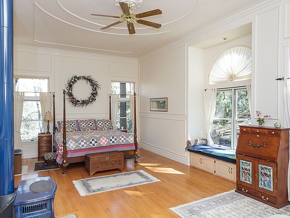 A rare find in the peaceful pines of Prescott just minutes from downtown! This home will delight your senses w/ its elegant European feel. Single-level living w/ high, curved ceilings & large windows to let in light and forest views. Bright & spacious master bedroom w/ fireplace & large master bath also boasts its own stove & French doors to private back patio where you can breathe in forest life. Cozy second bedroom w/ a full bath is also on the main floor. This highly custom home has a gorgeous kitchen w/ granite counter-tops & views of the pines all around, as well as a delightful formal dining room that opens to a living room basking in Old World style. A serene office rounds out the top floor of the home. Truly a gem!